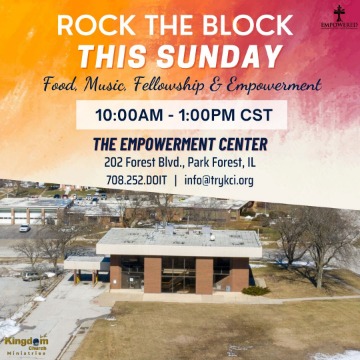 The Empowerment Center 202 Forest Blvd., Park Forest, United StatesJoin us on the Property of Kingdom Church Int'l. Ministries & The Home of Empowered People Church 202 Forest Blvd., Park Forest, IL 60466 Music, Food, Prayer & Empowerment!
