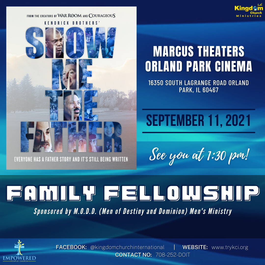 Marcus Theater Orland Park 16350 South La Grange Road, Orland Park, IL, United StatesWe invite you and your family to join our church family for this Amazing Time of Family Fellowship! Scroll to see the video Trailer below. Contact Minister Bernard Marrow for […]