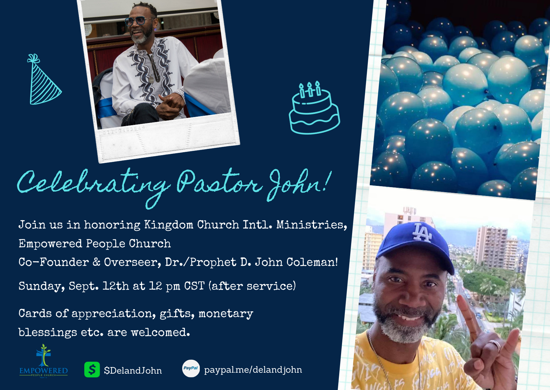 Majestic Office Center 5111 Sauk Trail, Richton Park, IL, United StatesSAVE THE DATE FOR SUNDAY SEPT. 12TH @ 12-12:30 PM CST (after service)! Join us in celebrating our very own Kingdom Church Intl. Ministries, Empowered People Church Co-Founder & Overseer, […]