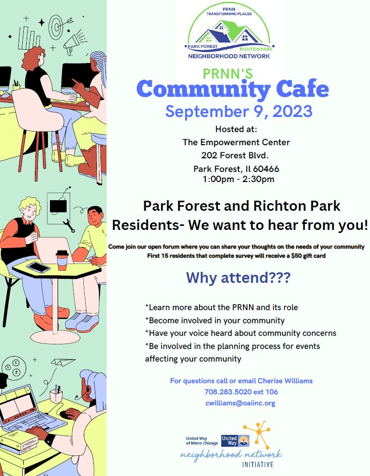202 Forest Blvd., Park Forest, IL 60466Elders and Leaders Meeting on September 5th, 19th, and 26thth 2023. The Empowerment Center 202 Forest Blvd., Park Forest, IL For more info, call 708-252-DOIT or email info@trykci.org.